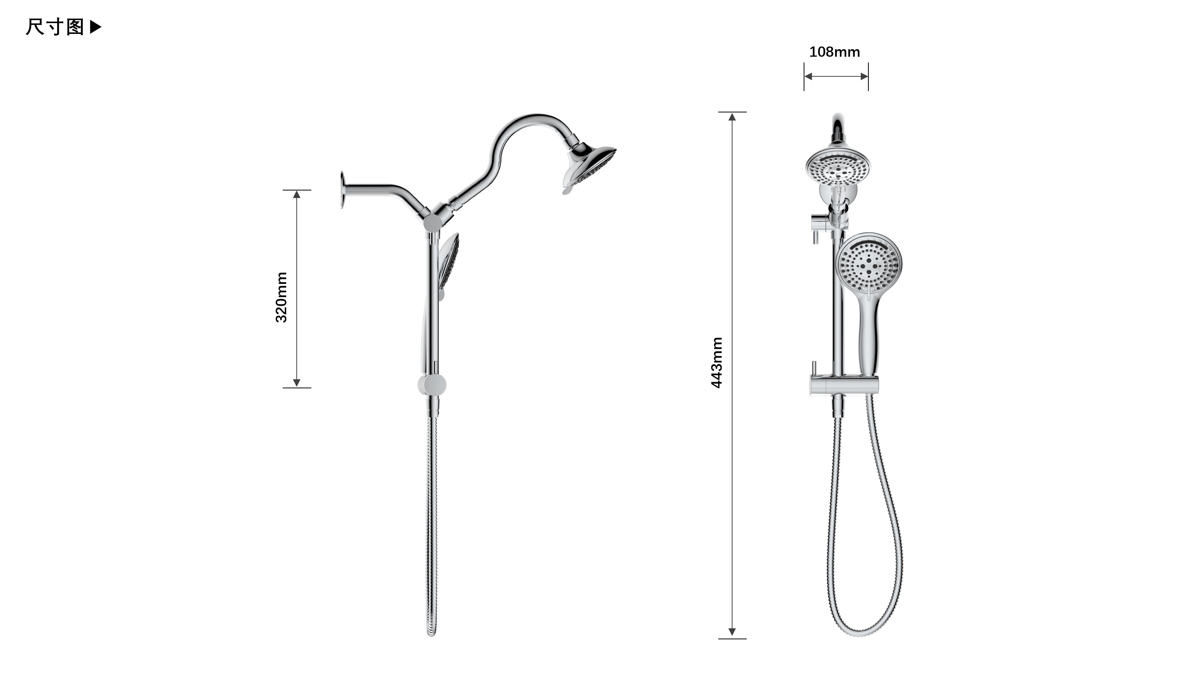 上出水彎管套裝;頂噴內(nèi)置球頭,可實(shí)現(xiàn)多角度旋轉(zhuǎn)調(diào)整;把手切換頂噴出水、花灑出水;轉(zhuǎn)動(dòng)把手調(diào)節(jié)滑座高低;帶瀑布水5功能花灑